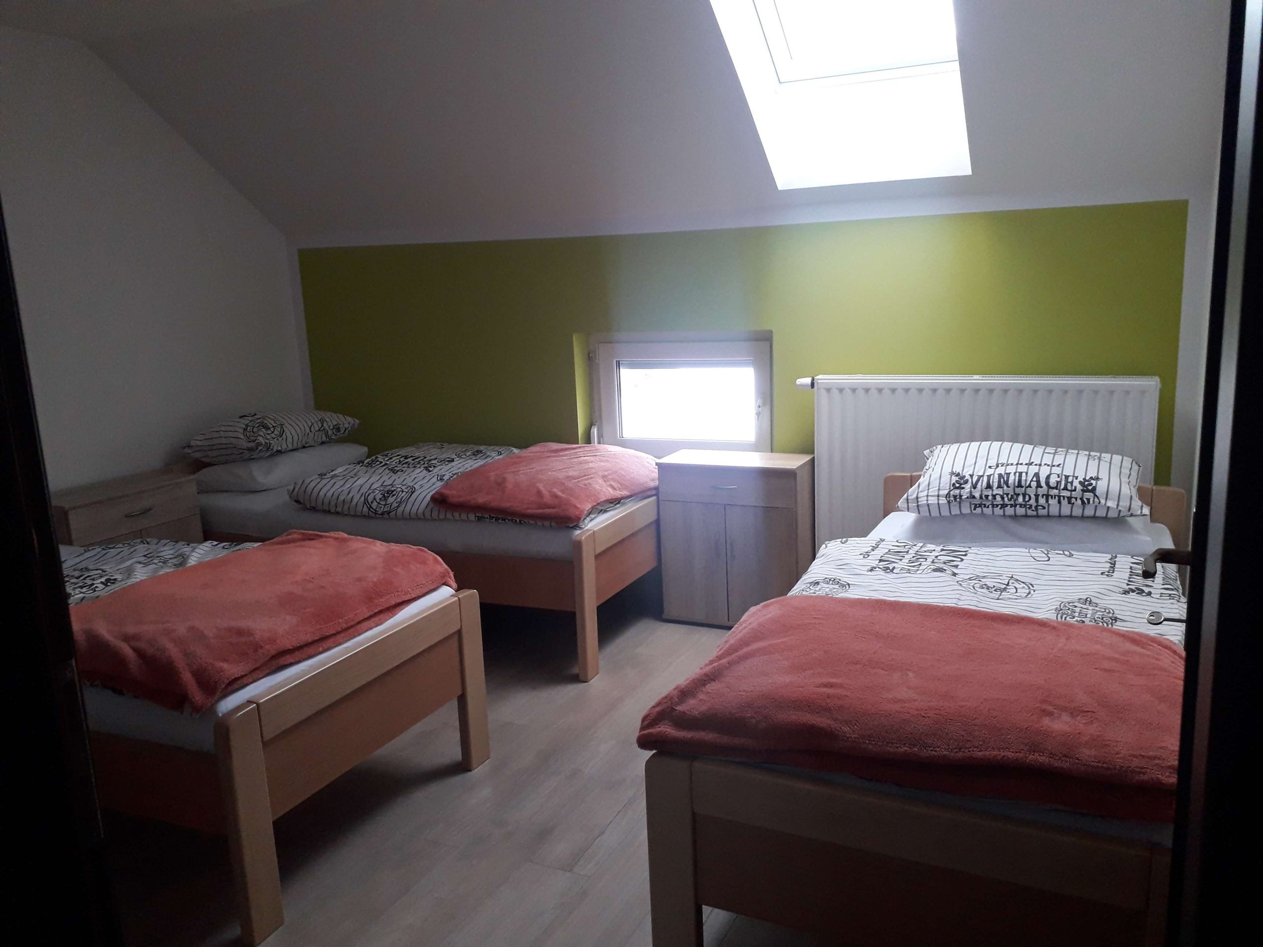 Osiguravamo smještaj za 18 korisnika 1., 2. i 3. stupnja njege, u prostranim, svijetlim, uredno održavanim i uređenim sobama. Oprema u sobama prilagođena je svakom korisniku – TV, električni kreveti sa stolićima za hranjenje, pomagala za olakšanu kretnju, telefon, Internet, vatrodojava, klima…
